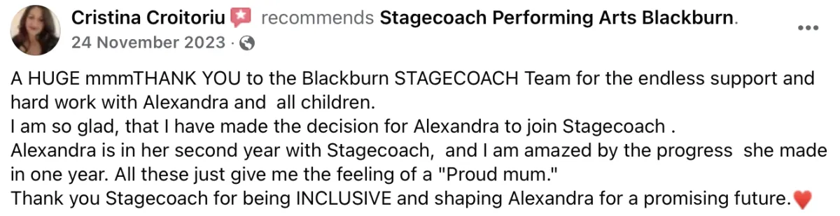 Develop their skills and confidence: By taking part in the classes and activities, your child will develop their skills and gain confidence in their abilities, which will help them excel both on and off the stage.
