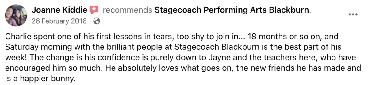 ✔️ Your Child would like to improve their Singing, Acting and Dancing, while also building confidence and social skills.